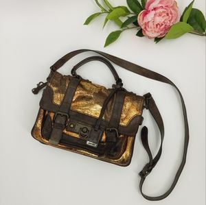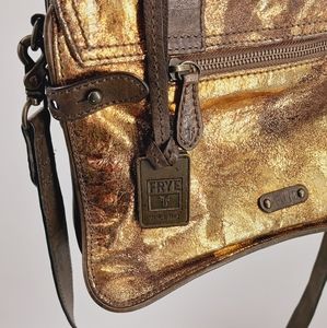 FRYE Cameron Metallic Gold, Copper & Brown Leather Small Satchel Crossbody Bag