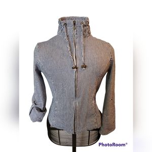 CHRISTOPHER & BANKS SIZE Medium, navy blue & white stripes, full zip front.