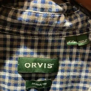 Orvis button down blue plaid shirt