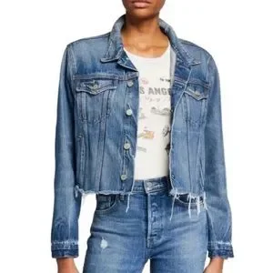 GRLFRND CARA Denim Jacket Raw Hem Distressed Wash