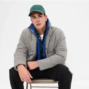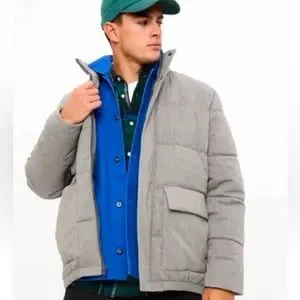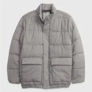 Gap Men Gray Glen Plaid Quilted Insulated Puffer Jacket Pockets Primaloft M $168