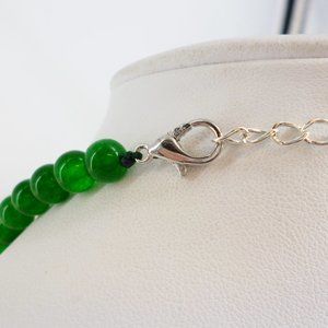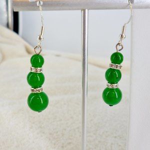 Set Necklace & Earrings Jade Green Glass Beads 925 w/Crystals NWOT Perfect