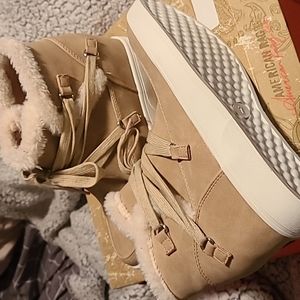 Womens wedge booties, tan, size 7, only worn once