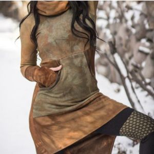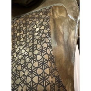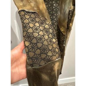 Sew Much Love Leia Tunic. Sold out and hard to get. All her pieces sell out within minutes. Handcrafted and hand dyed, so each piece is completely unique. Slim fit long tunic with with swirls of soft earthy hues in dirty browns, earthy greens, cream and sky blue. Sacred geometry details along torso and elbows. #sewmuchlove #crossfox #slowfashion #ecofashion #echofriendlyfashion #sewmuchloveclothing #sacredgeometry
