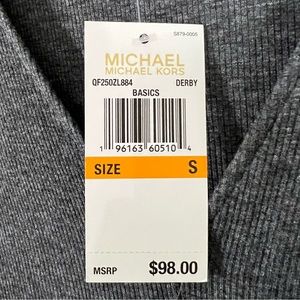 Michael Kors Derby Basics gray ribbed sweater. V-neck, faux buttons, and tie front. Size small. Smoke-free home. New with tag! Armpit to armpit 18”, sleeve length 18”, length 22”