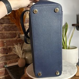 Navy Michael Kors purse that is no longer sold through their store. The navy is a beautiful color and goes well with a lot of outfits. The purse has barely been used and is in great condition.