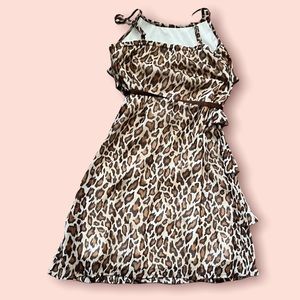 Justice girls cheetah print tiered gauzey type dress Sz 8 shimmery belt