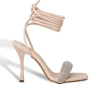 [DESIGN]: These gorgeous strap heels have a heel height of approximately 4.5 inches”. These heels are designed to be laced up around your legs! They have a square open toe with a single puffed rhinestone embellished strap around the toes for an additional flare to any outfit.