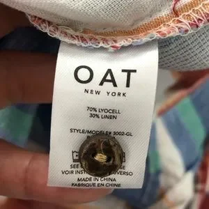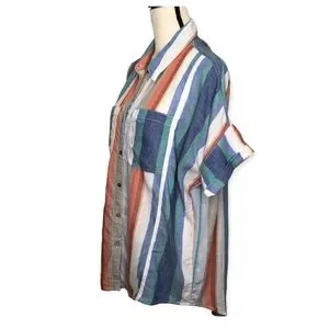 OAT New York Striped Short Sleeve Button Down Linen Blend