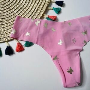 Victoria's Secret Sexy Illusions No Show Thong Panty Pink Flora Butterfly M NEW
