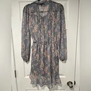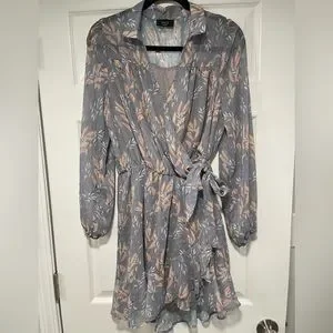 Beautiful long sleeve dress with snap enclosure by the chest and tie by the hip - tie isn’t removable or adjustable!