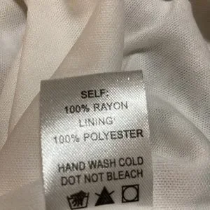 This dress is fully lined with bell sleeves. It’s a pullover with elastic waist made of 100% rayon self and 100% poly lining. It size small laid flat from shoulder to hem 36”. It’s in lightly used condition.