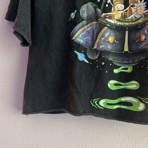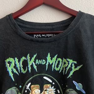 Perfect for any fan of Rick Morty! This t-shirt is cropped with a raw hem and features a fun graphic on the front. Is a a size XL to fit as an oversized M/L!