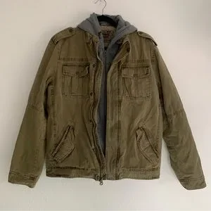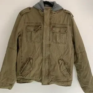 Levi’s Hooded Cotton Canvas Military Trucker Jacket Tan Work Outdoor Layered M