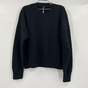 Quince Women's Black Boyfriend Crew Sweater 100% Organic Cotton M NWT Oversized
