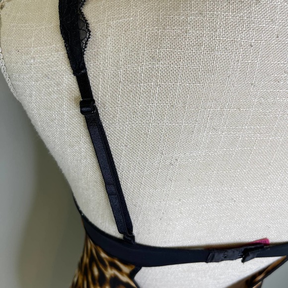 Features: Adjustable Straps, V-Neck, Lace detailing, All Over Animal Print