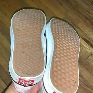 Previously enjoyed Vans. Overall condition is good. A little soiled.