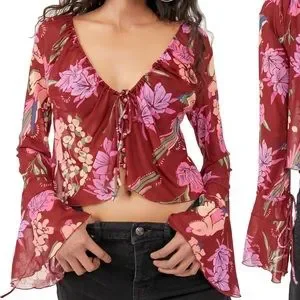 26. Free People Of Paradise Floral Bell Sleeve Blouse