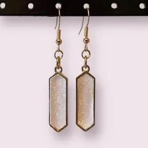 gold and white sparkled earrings with gold colored wire