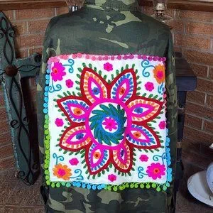 Escalier Camouflage Blouse Tapestry Embroidered Back Size M