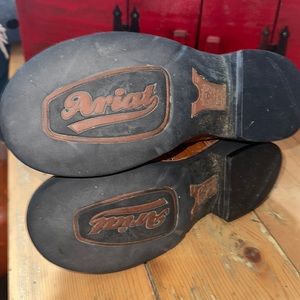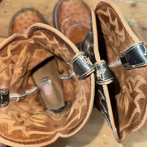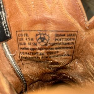 Vintage Ariat Pro Baby Ostrich leather cowboy boots. Women’s size 7 B , color is cognac ostrich bottoms with Saddle vamp style, dark green shaft with beautiful embroidery detail. Style number 16833 Great shape for their age. Sole is a little worn. Have been oiled up over the years, leaving oil spots. Toes have small scuffs. See photos for lots of details. Leather is in amazing condition. Sold as is, please ask questions, smoke free, pet free home. Offers welcome.
