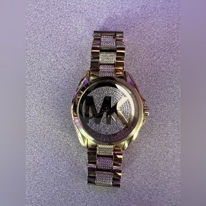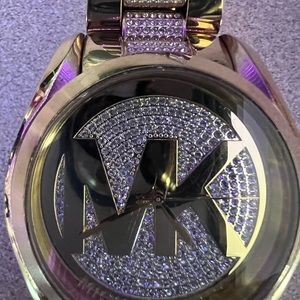 Like new Michael Kors watch. Sparkly bling on watch face and on the band. Gold color. Stainless steel. May need battery.