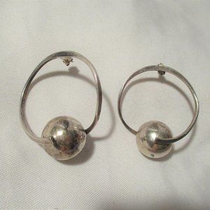 Stunning Native style pierced earrings, 925 STERLING SILVER, with hoop and ball design, measures approx 2" tall, 1.6" wide. Weigh approx 16.6 g. Beautiful, as pictured, gift suitable for vintage jewelry lover, or for holidays, Valentine's or Mother's Day, lover, best friend, girlfriend, end of the year, teacher, grad, or present to self!