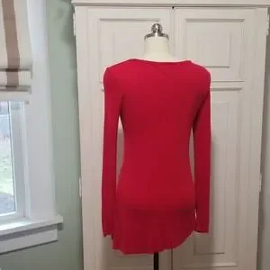 women's red micro ribbed long sleeve, light weight spandex and rayon asymmetrical casual top.Excellent condition.