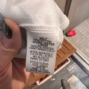 Dolman short sleeves. 70% cotton/ 30% polyester.