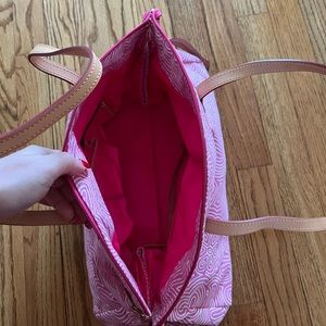 Sweet Pink/White Durable Fabric With Leather Straps - Dooney & Burke Signature Satchel Bag