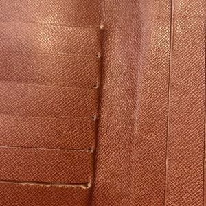 Louis Vuitton bi fold wallet it has a snap compartment you open it up for credit cards and bills. It will hold six cards on one side and two flaps on the other side. The back opens up for bills. There’s also a zipper compartment with two separate openings. I bought this is LXR and company from Stein Mart march 2020. There is an insert for more cards. I have the receipt and LXR in companies authenticity. Closed it is approximately 4 inches wide and 6 1/2 inches long open. It is approximately 8 inches great condition besides a couple of stitching and wear. See pictures