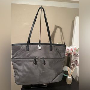 Michael Kors Designer Medium Gray Nylon Shoudler Tote Handbag W/ Outer Pockets