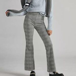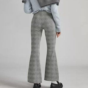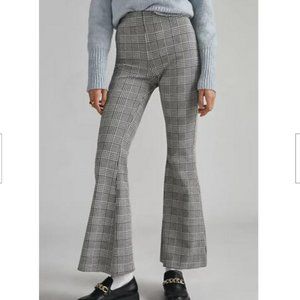 Anthropologie Maeve XL NWT Plaid Wide-Leg Pants Pull On Flare Kick Black New