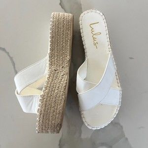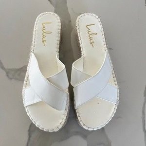 Lulus Womens Espadrille Sandals White Kahli Platform Slip On Boho Shoes Sz 6.5.