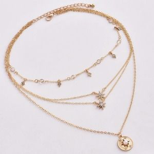 Boho Festival Icons Gold Necklace Chain Layered Multistrand