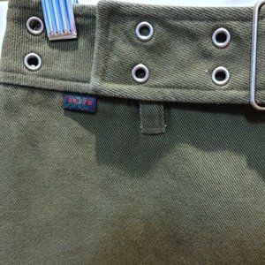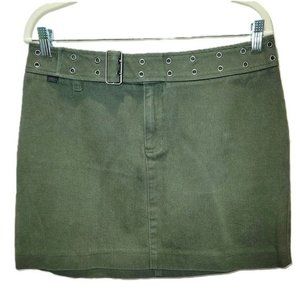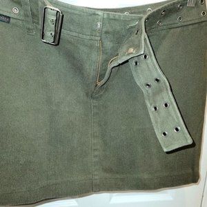 Vintage Ralph by Ralph Lauren Mini Skirt Army Green Cotton Denim Moto Size 12
