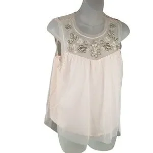 Hollister Babydoll Layered Tank Top Womens M Pink Embroidered Sleeveless Top