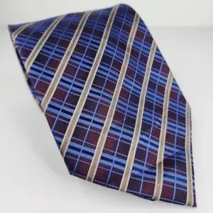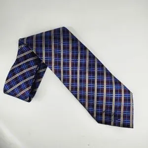 KENNETH COLE Red & Blue Plaid Silk Tie.