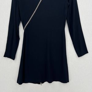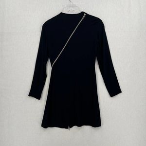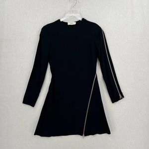 A.L.C. Dress Womens 0 Black Miro Viscose Blend Zipper Accent Mini Fit Flare Crew
