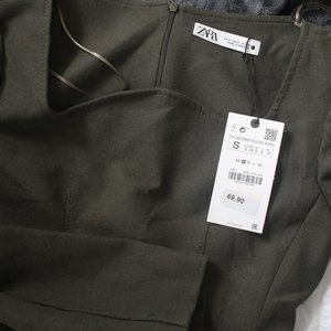 NWT TOPSTITCHED KHAKI SLIT TOP.