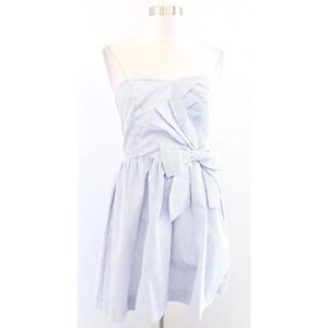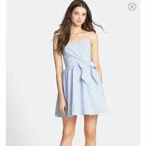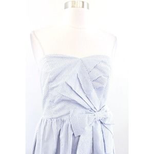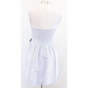 Lilly Pulitzer Henrietta Blue White Seersucker Stripe Strapless Bow Dress Size S