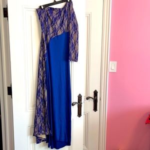 HOST PICK❣️New Blue Mesh Overlay One Shoulder Evening Dress Gown Sz XXL 14/16