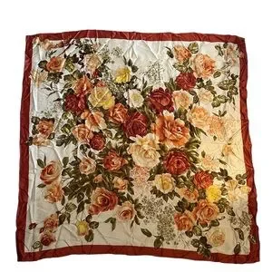 100% Silk Rose Pattern Scarf | Light Weight | Colorful