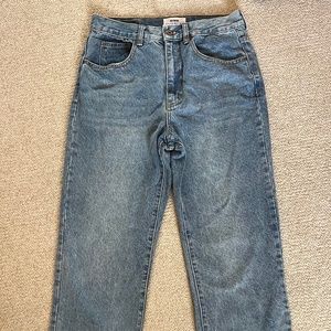 Color is a faded medium wash, tried on once and never worn after that, no signs of stretching. Size 4 US. Denim is slightly thicker and shape has minimal stretch. Super cute dad jeans that aren't sold at Cotton On anymore!