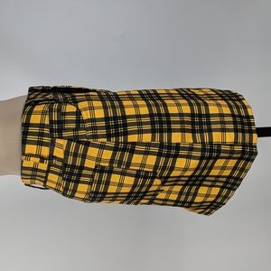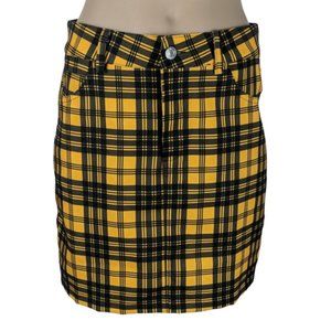 Womens Skirt Size Small Yellow Black Check Mini Pencil Zip Fly Button Belt Loops