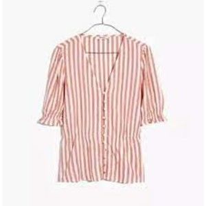 Madewell: in stripey lightweight cotton, this feminine, easy-to-wear v-neck popover top has vintage-y covered buttons and a flattering (and comfy) elastic peplum waist.