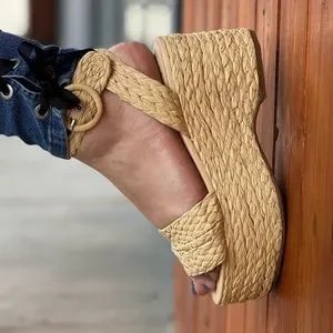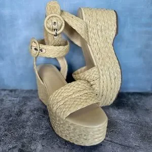 Espadrilles wedges natural tan sandals vacation shoes boho