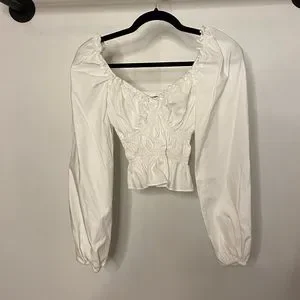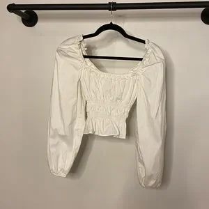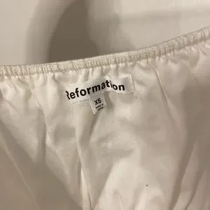 Reformation Fern Ruffled Gathered Stretch Organic Cotton Poplin Top. Retail $200. Reformation's pretty 'Fern' top is cut from organic cotton-poplin blended with stretch, so it's really comfortable to wear. It's elasticated and gathered through the waist for a snug fit and has a ruffled neckline and gently fluted peplum hem.