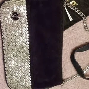 JUICY COUTURE Velour Sequin Crossbody bag. Navy with silver hardware. New without tags in dust bag. Never used, but fabric has minor small light spots from storage. Overall, in excellent shape. Please see photos. Dimensions: 7" x 10.5", 22” strap drop.