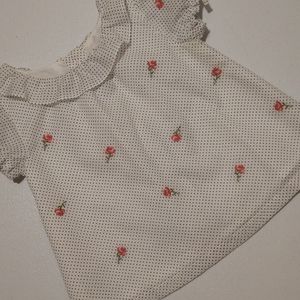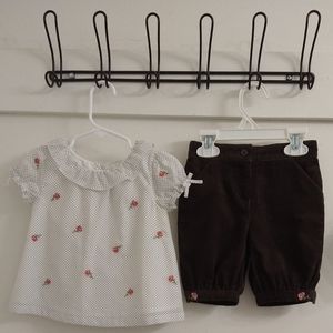 EUC Janie and Jack Baby girl set! Adorable white blouse with flowers and polka dots on it and matching brown, light weight, capri, cordoury pants with flowers on the bottoms. size 12-18 months! 🌹